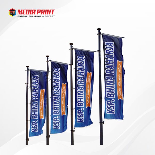 Umbul-umbul atau kain print adalah media promosi berbahan kain yang fleksibel dan menarik perhatian. Dicetak menggunakan teknologi digital printing, kain ini memungkinkan desain custom seperti logo, teks, atau ilustrasi dengan warna tajam dan detail yang jelas. Cocok untuk promosi acara, dekorasi festival, branding perusahaan, atau identitas komunitas, umbul-umbul ini dapat digunakan untuk kebutuhan indoor maupun outdoor.